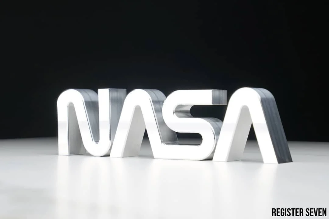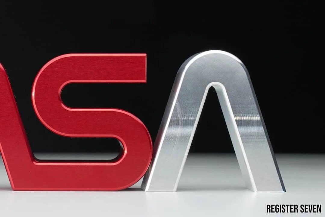 From its debut in 1975 the NASA “Worm” logo has been a favorite among NASA fans. To celebrate Space X’s historic mission of launching astronauts to space from American soil, NASA re-issued the iconic worm logo. We’re continuing the celebration by machining the worm logo in metal.